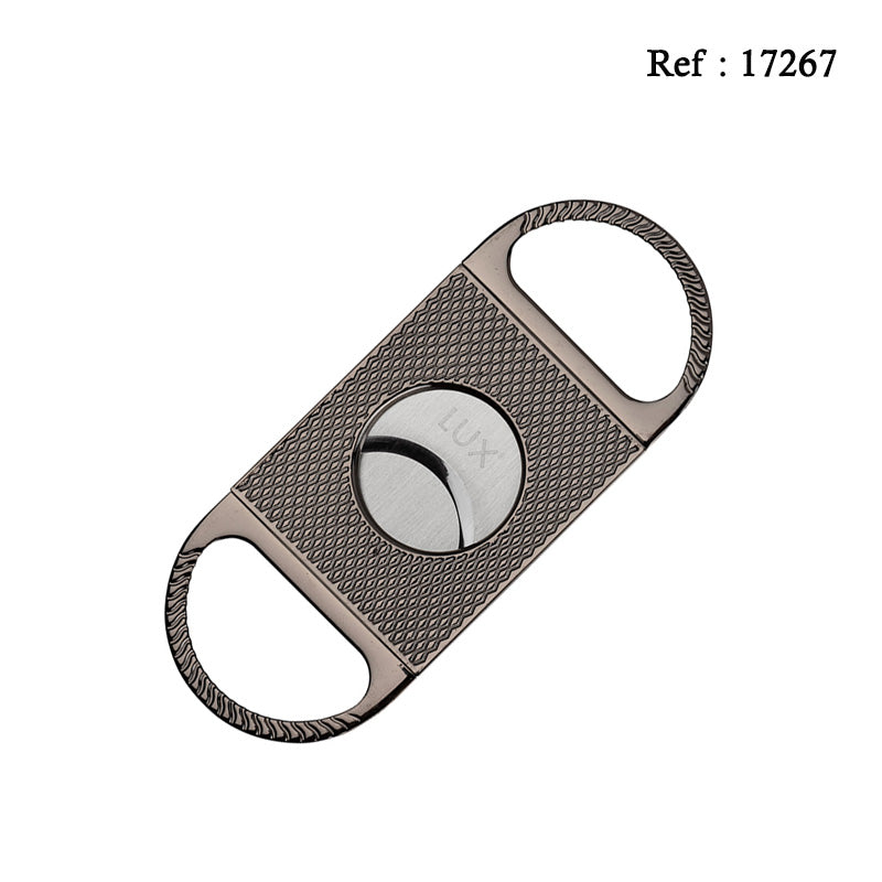 Magnifique petit coupe cigare facile à transporter et efficace, il se compose de 2 lames en acier inoxydable et un corps en gun guilloché pour couper vos cigares